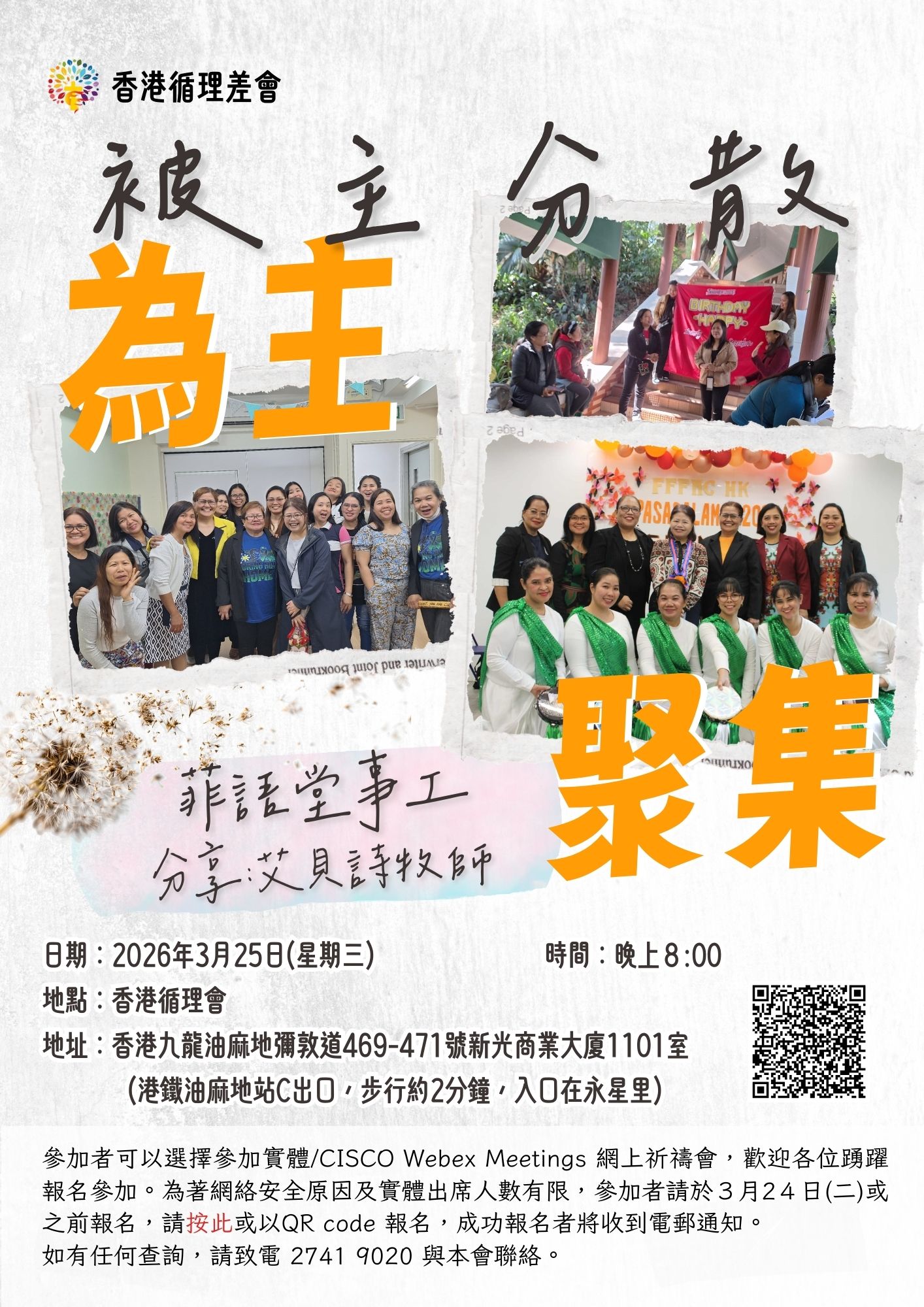 - 循理會恩成堂於3月28日在深水埗進行南亞文化行區體驗活動,為參加者初步認識和接觸南亞人士代禱,願主幫助眾肢體看見不同國籍的鄰舍,並樂意關心他們。