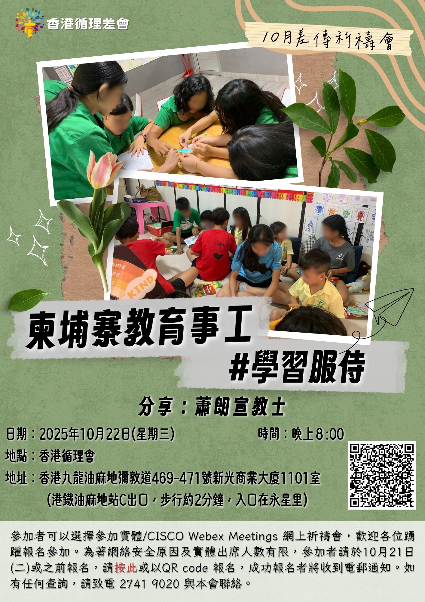 - 請為10月4-9日的越南文化交流團禱告,願主保守隊員的身心靈,在短宣中經歷主的帶領及恩典,更多學習倚靠主。